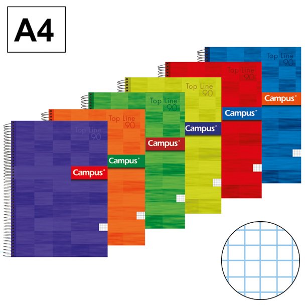 Bloc espiral tapa extradura campus a4 80 hojas 90 gramos cuadricula 4 mm.